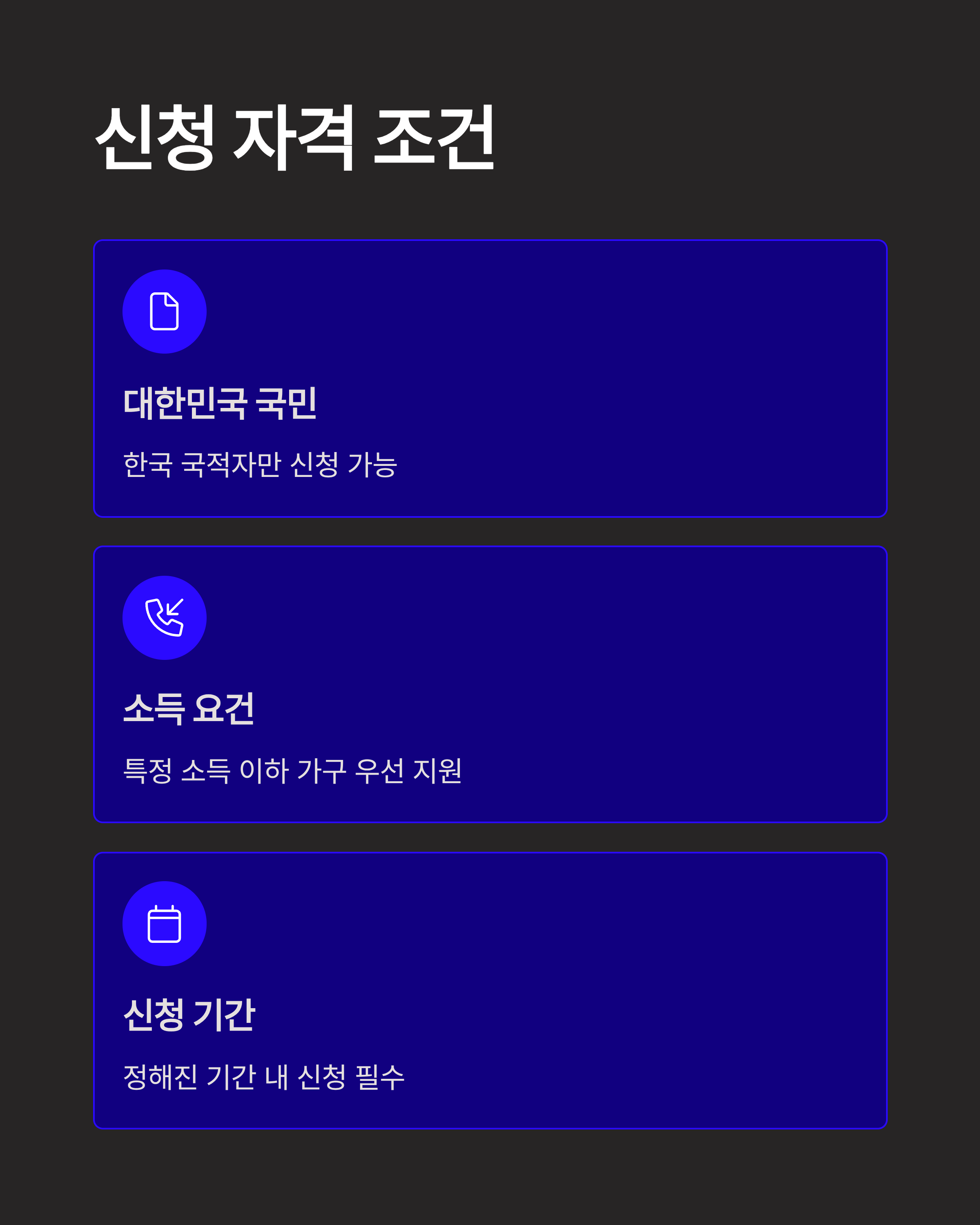 A3: 대한민국 국민이며, 특정 소득 이하의 가구에 우선 지원됩니다.